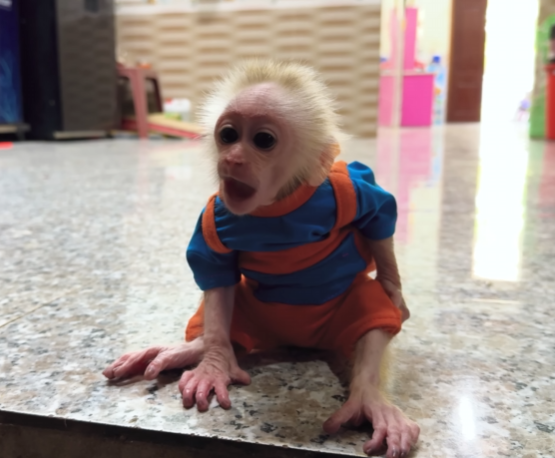 Baby Monkey’s mouth formed a perfect little “O,” imagining CUTIS as a tiny baby crying just like him.
