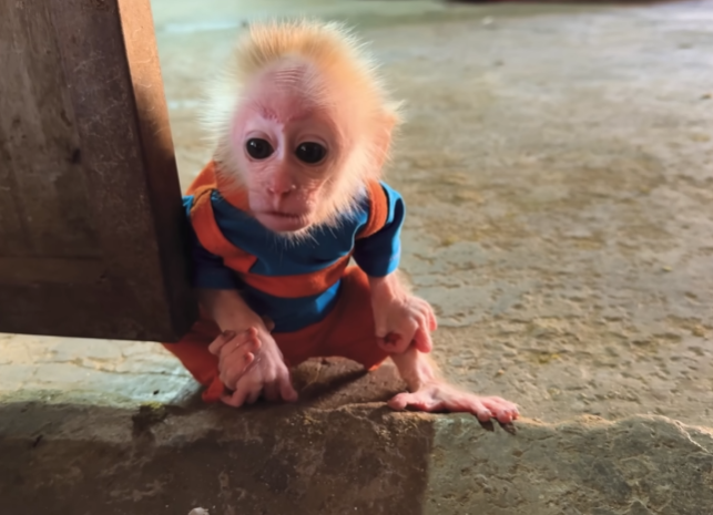 Baby Monkey peeked from the collar of CUTIS’s shirt, eyes wide, fur puffed, heart racing.