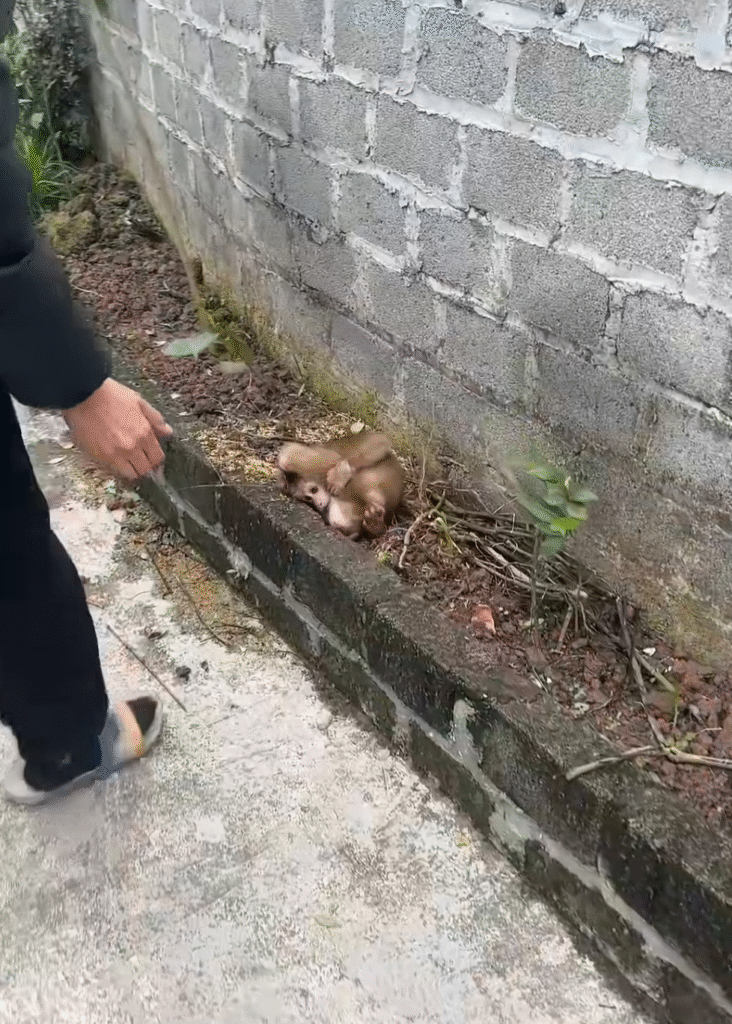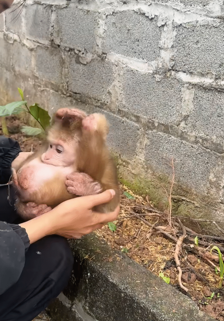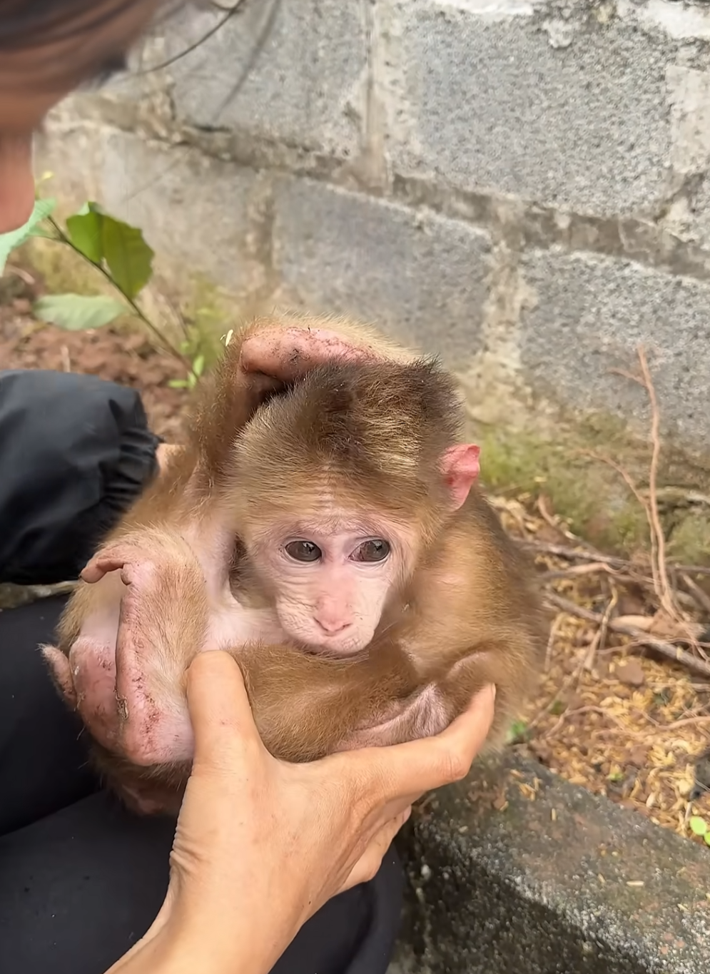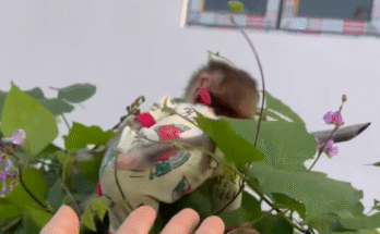 That was when Tiko, an older juvenile monkey known for being kindhearted and surprisingly responsible, spotted him. Tiko had been gathering fruit nearby when he heard Milo’s soft whimpers. His ears perked, and he immediately ran in the direction of the sound.