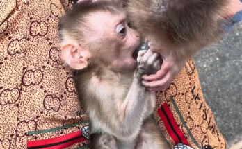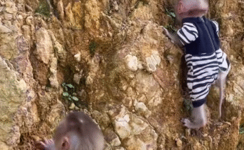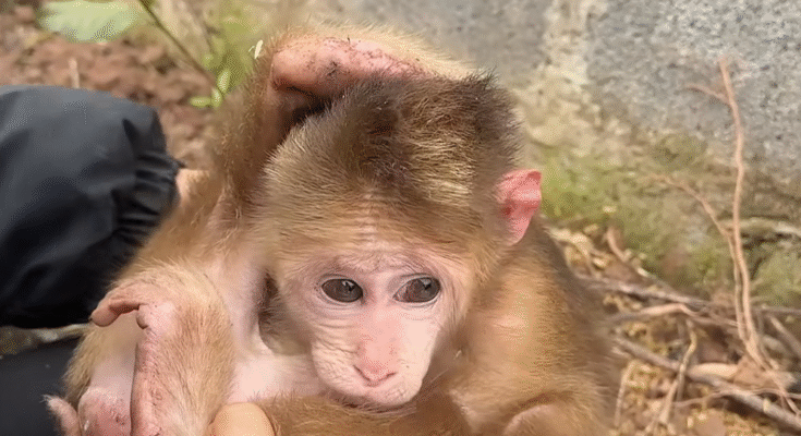 The sun had barely risen over the quiet forest when the soft rustling of leaves broke the morning silence. A tiny baby monkey named Milo sat curled beside a fallen log, his little body trembling. He had slipped while climbing a branch earlier that morning—nothing life-threatening, but enough to scare him and leave him stuck, unsure what to do next.