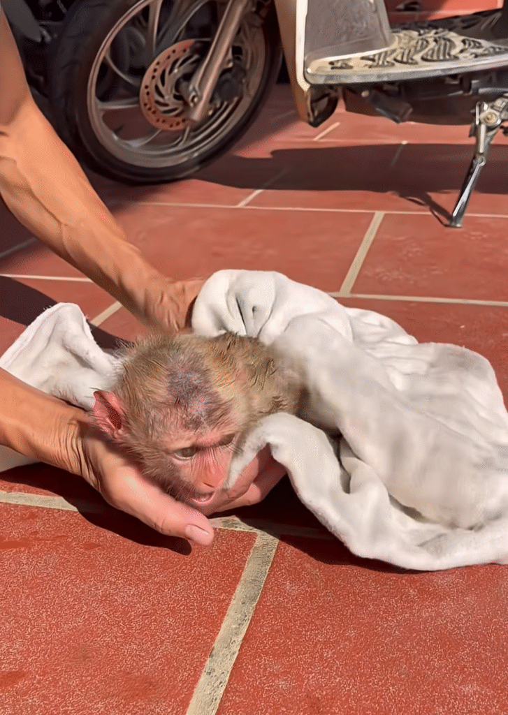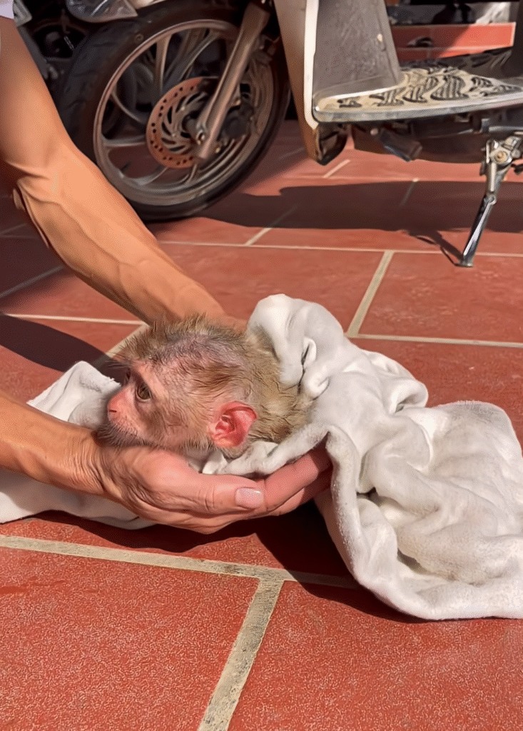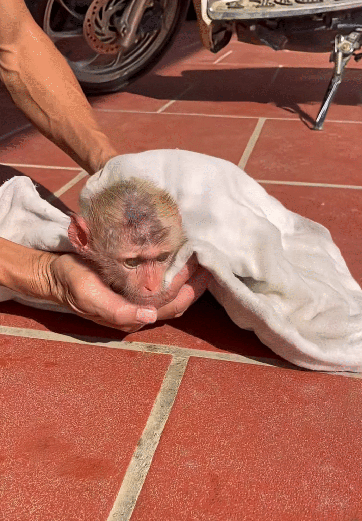 He sat down in their cozy corner and placed Kimo on his lap again. The baby monkey held the bowl with both tiny hands and drank eagerly, tiny slurping sounds filling the room. Ranu kept one hand on Kimo’s back to make sure he didn’t fall or spill.