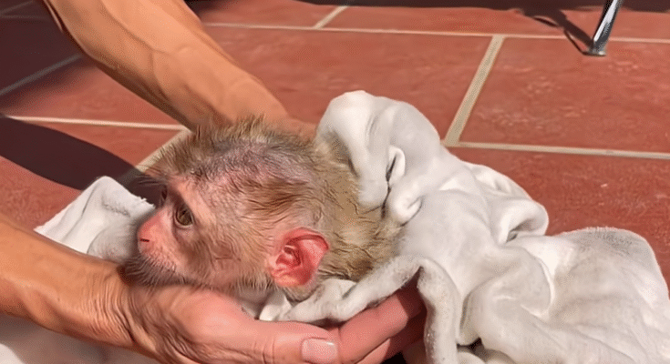 Inside, baby Kimo was finishing his bath. His tiny body was still wet, his fur sticking close to his skin, and he looked even smaller than usual. His father, Ranu, had just finished washing him with warm water and mild soap made from forest herbs. Kimo loved bath time, but today he felt a little chilly. He curled his arms inward and shivered softly.
