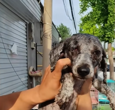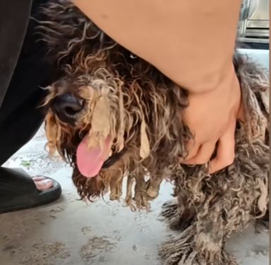 At first, I almost didn’t see him. His fur was matted so tightly that it clung to his bones like a suffocating blanket. He blended into the dark corner he curled himself into. But then I heard it—an almost silent whimper, the kind that breaks through your chest before your ears fully register it.