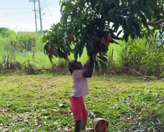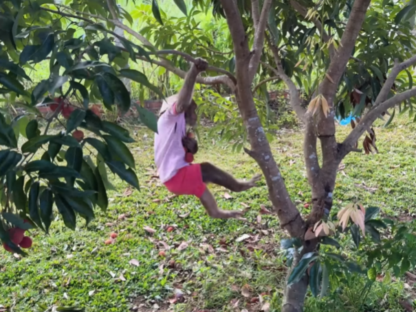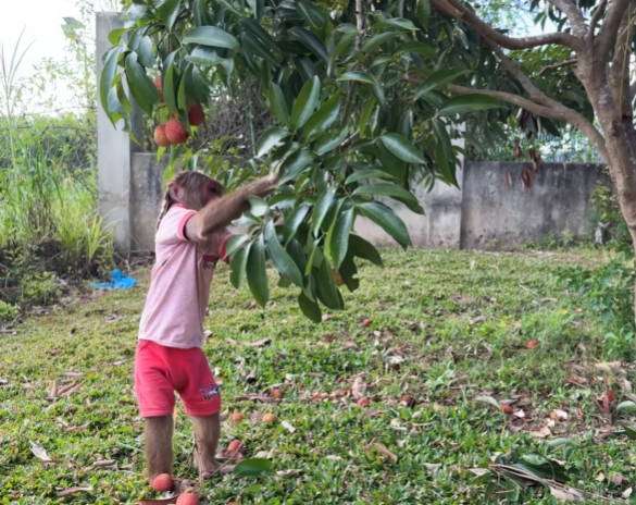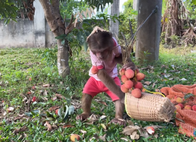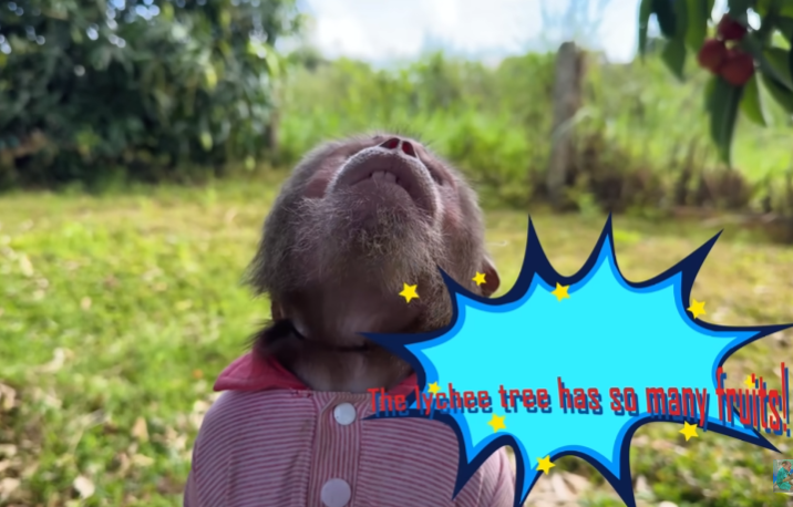 “Hello everyone! Today Baby Monkey and I harvested fresh veggies and fruits from Uncle Darro’s farm! Look how beautiful these tomatoes are!”