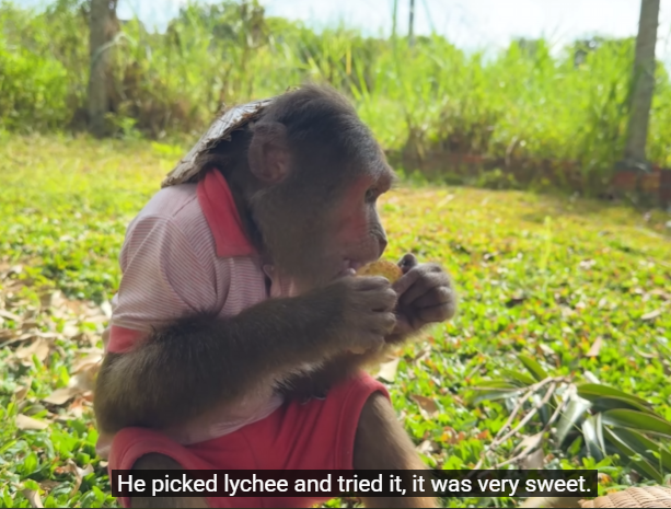 Baby Monkey lifted one too—then took a huge bite out of it.