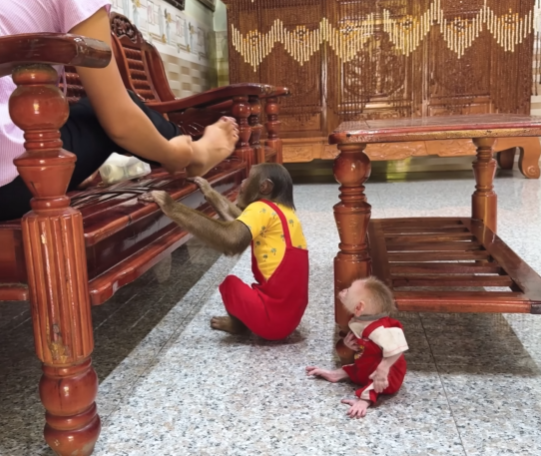 CUTIS brushed Mom’s hair. Baby Monkey brushed her arm… then her leg… then CUTIS’s back.