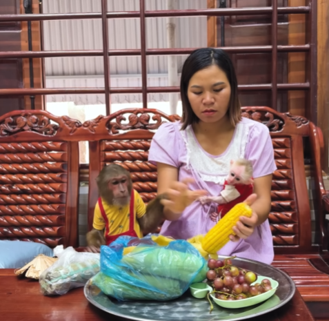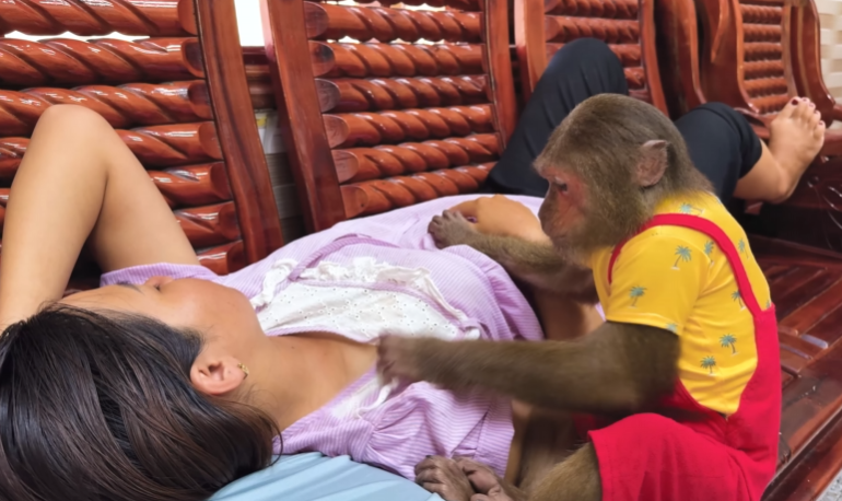 Morning sunlight crept through the curtains, brushing softly against Mom’s tired face. She had been working late for several days—cooking, cleaning, helping relatives, and still trying to take care of CUTIS and Baby Monkey. Usually she hid her tiredness behind a smile, but today even that smile looked sleepy.