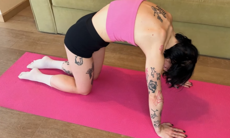 To deepen her back mobility further, she lowered into a forearm bridge, lifting her hips high, engaging her glutes, and creating a flawless arch in her spine. The pose was demanding, but she moved with practiced control.