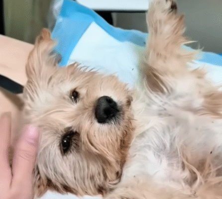 It was the first warm touch he had felt in so long that he didn’t even know how to react. His tail gave the smallest, uncertain wag—weak but hopeful.