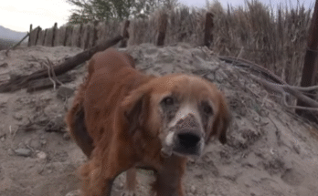 He was small, thin, and covered in matted fur that had once been a beautiful golden brown. Months of sleeping on cold cement had dulled it into a dusty, uneven mess. His ribs showed through his skin, and his tail—once fluffy—now hung limp, twitching only when he gathered the courage to imagine that maybe, just maybe, one day he could be one of those happy dogs sprinting across the field.