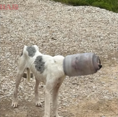 It looked unsettling from far away. A small animal—maybe a dog, maybe something else—was stumbling blindly, its head trapped inside a tall ceramic vase. The vase was cracked at the base and shaped like a narrow-necked tube, far too tight for anything to escape from once it slipped in. The creature walked into walls, bumped into trash cans, and sometimes collapsed from exhaustion. But still, nobody dared to approach.