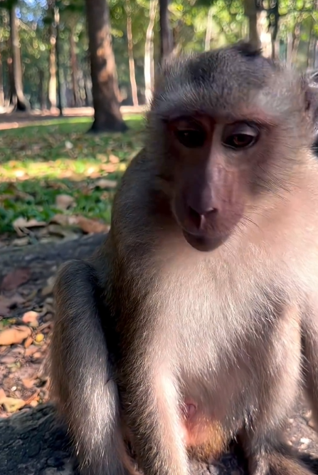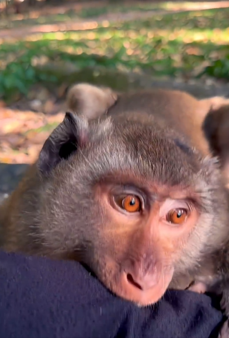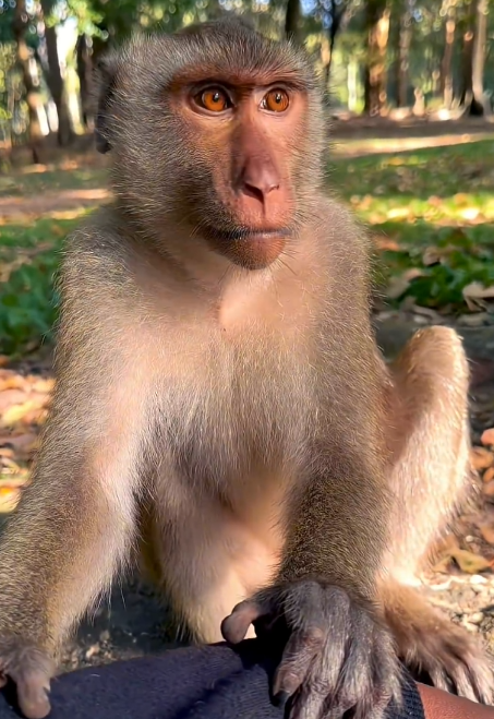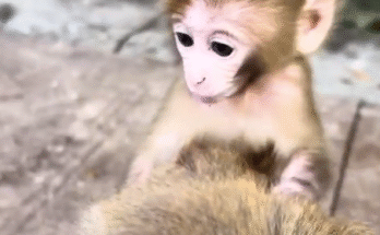The other monkeys had paused, sensing the tension and excitement in the air. Even the adults seemed to watch silently, curious about how this unusual interaction would unfold. Tiko squeaked again, whispering to a friend, “This is gonna be funny…”