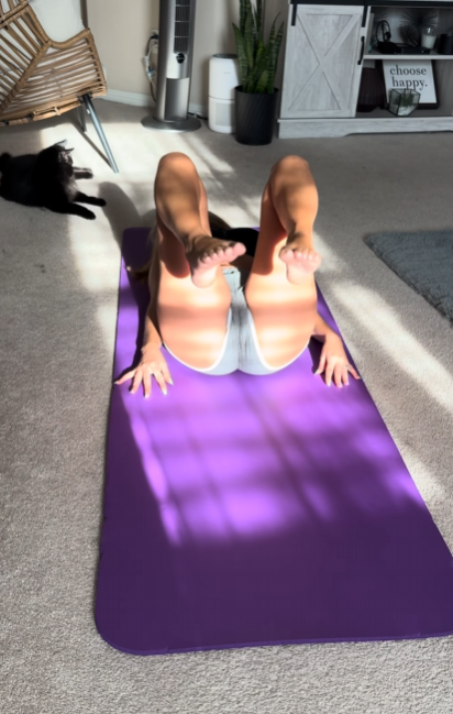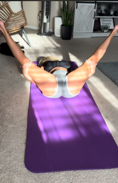 Switching legs, she mirrored the same gentle arch on the other side, making sure her movements were slow, fluid, intentional.