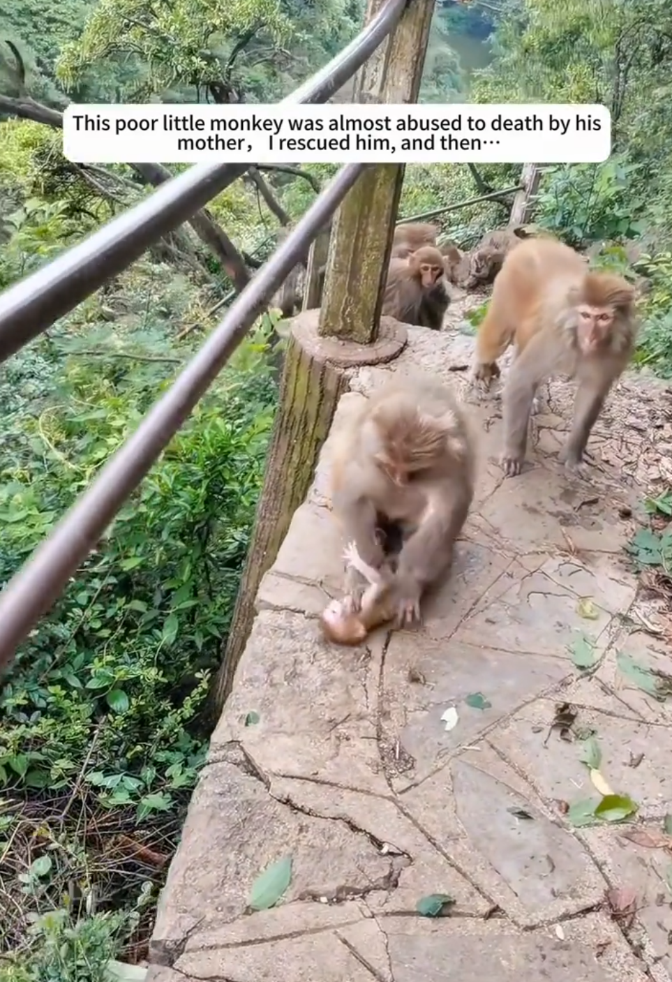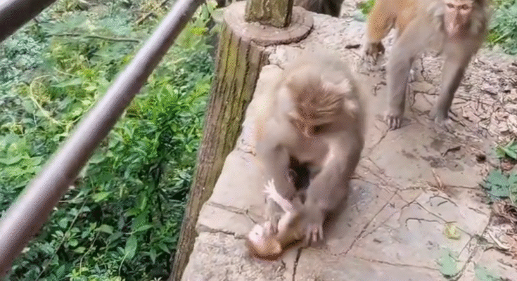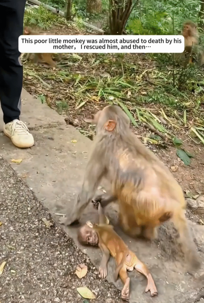 Not all animals are perfect parents, and some mothers—especially very young ones—don’t know how to take care of their babies. That seemed to be what happened here. The mother monkey had been overwhelmed, stressed, and frightened from living near people, and instead of protecting her baby, she had pushed him away and acted aggressively toward him.