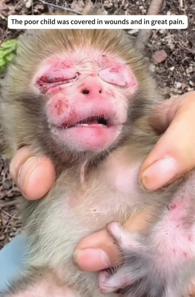 He was tiny, about the size of a small kitten. His fur was messy, and his little hands opened and closed slowly as if he was calling for help. He didn’t try to run. He didn’t even lift his head.