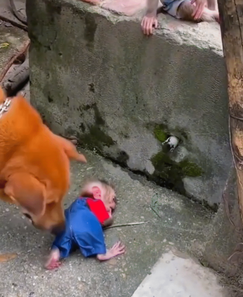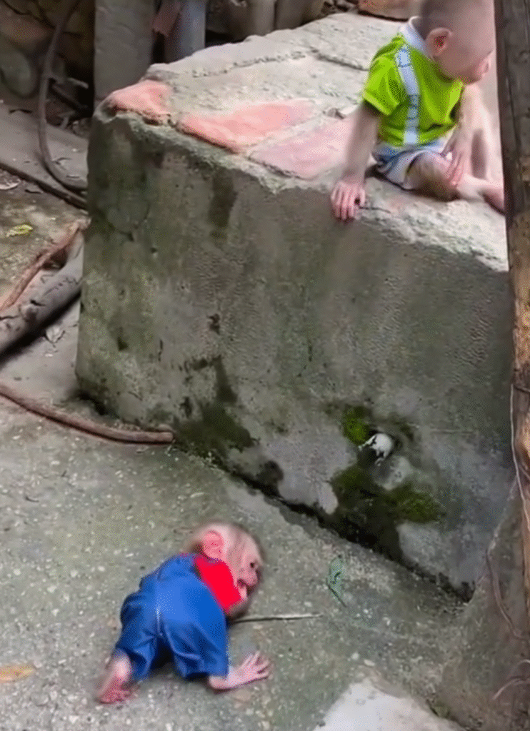 It wasnât a long fall, but for a baby monkey, it felt scary. He landed on a soft patch of leaves and grass, but the shock brought tears to his eyes. The world felt loud, too bright, too sudden. He curled up, holding his arm close to his chest, whimpering softly.