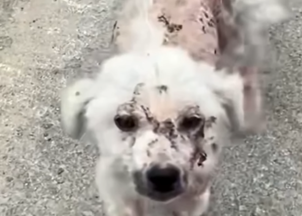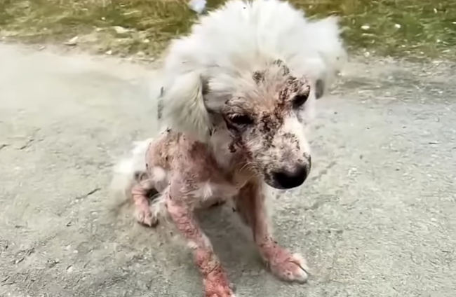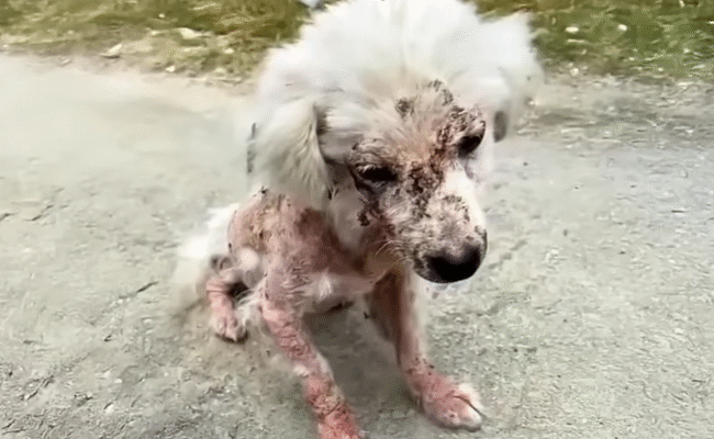 She stumbled back each time, yelping, crying, trying to escape, but there was nowhere to go. Each strike landed on a body already weakened, bruised, and trembling. Her ribs showed beneath her patchy fur. Her legs shook with every step. She wasnât even trying to defend herself. She just wanted someoneâanyoneâto understand.