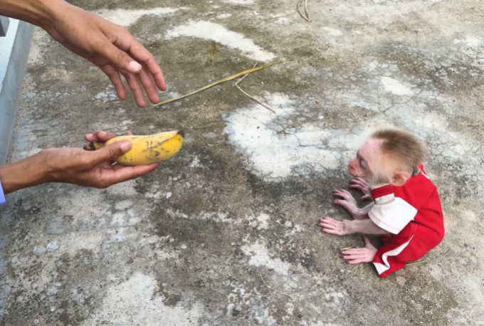 The baby monkey froze.