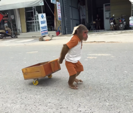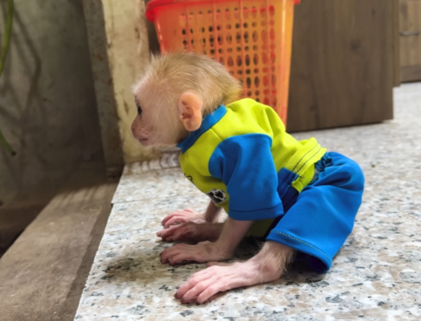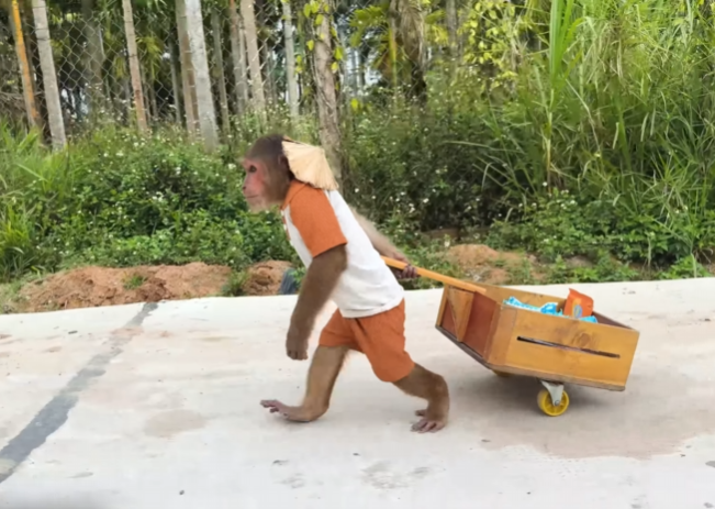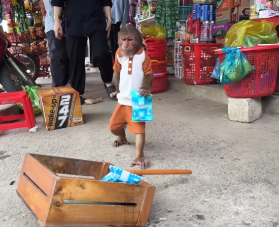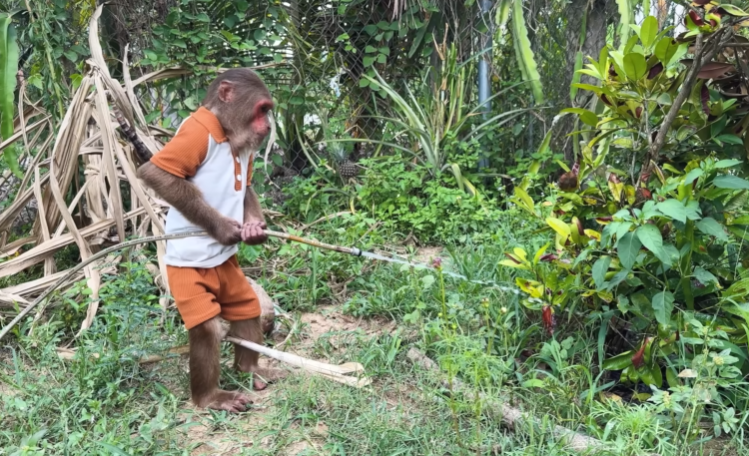 CUTIS picked up the broom. Meanwhile, the baby monkey grabbed the small hand brush—clearly proud to help. He dragged it across the floor, though most of the dust ended up on his own feet. Still, CUTIS smiled. “Good job,” he whispered, even though he knew he’d have to fix it later.