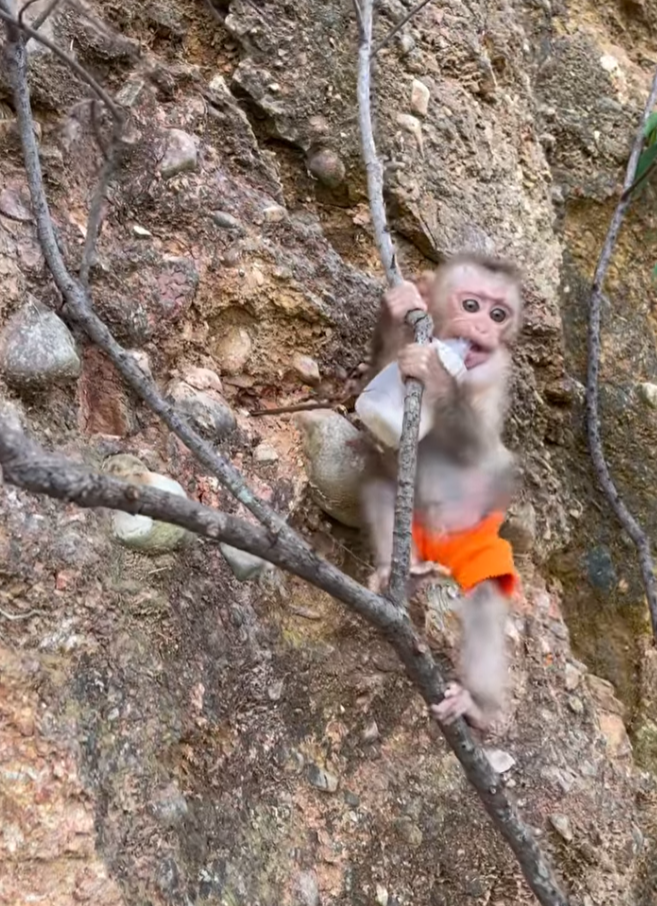 Again he jumped, clinging to Lin like a little koala. His expression was even funnier this time—mouth open, eyes wide, ears sticking out.