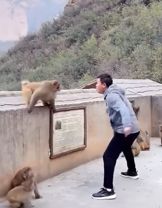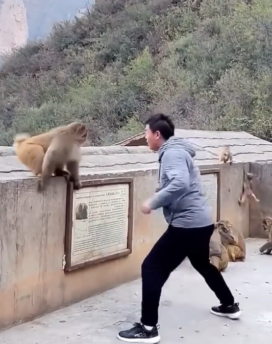 But it’s important to remember something: Brother Monkey’s tricks are funny on him—but dangerous for people to imitate. His speed comes from natural instinct, years of climbing, and the biology of a monkey. Humans can’t move like that, can’t leap like that, and certainly shouldn’t try to steal things with lightning-fast hands for entertainment. What is natural and harmless play for a monkey could be trouble for a human. So it’s best to admire Brother Monkey from a distance, laugh at his antics, but not copy them.