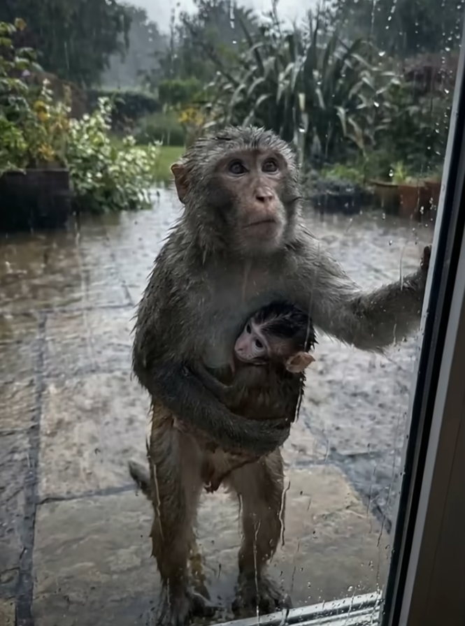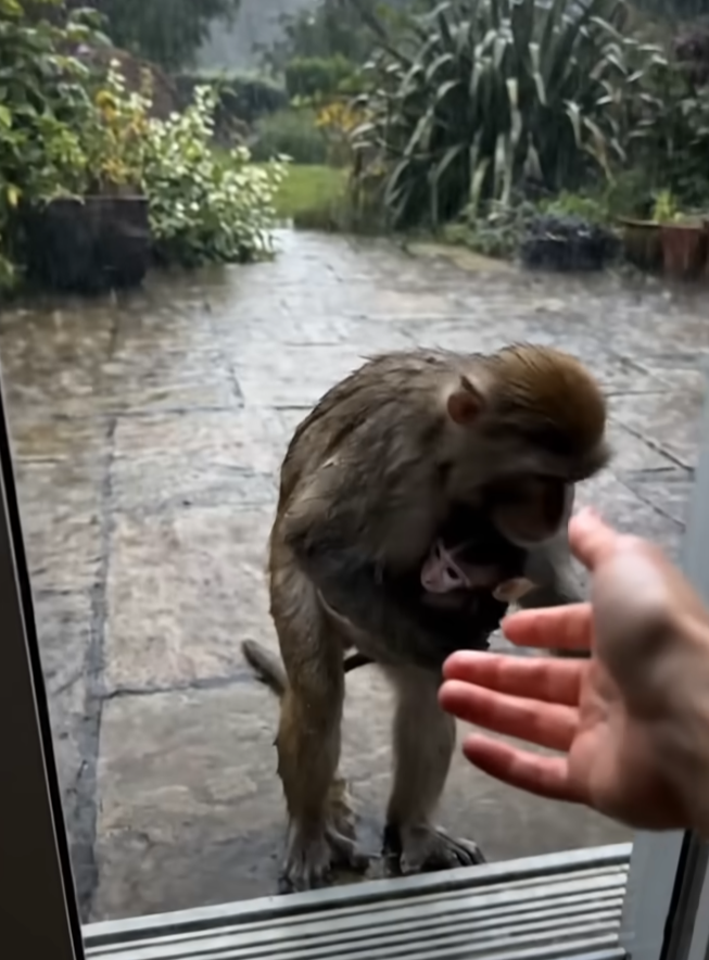 Macaque Monkey and Baby Saved from Heavy Rain šŸŒ§ļøšŸ’šŸ‘¶