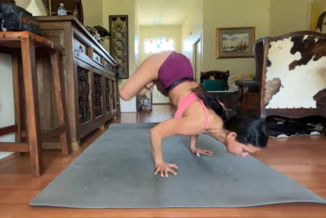 As the warmth deepens, so does the practice. Amara moves into longer-held stretches: