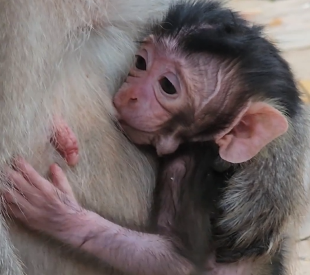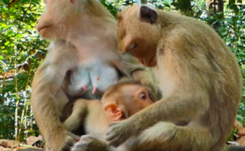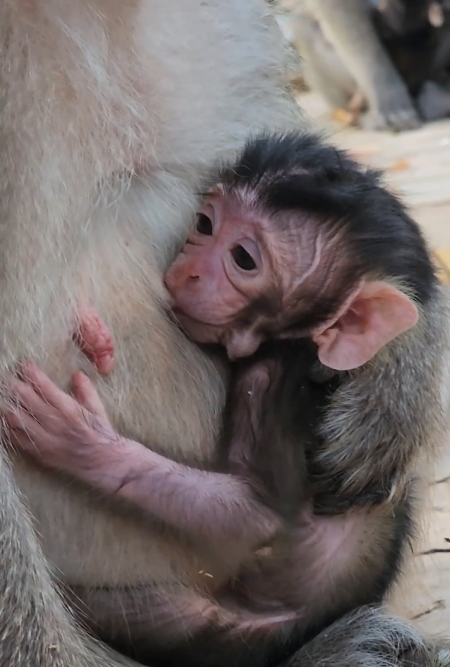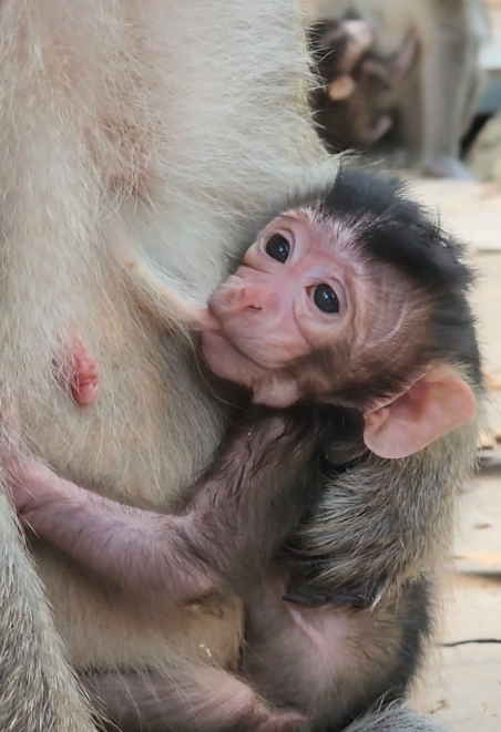 Spring had just begun to paint the forest with its warm colors when a tiny new life arrived, bringing a burst of sweetness that seemed to brighten every corner of the jungle. The newborn baby monkeyâsoft, impossibly small, and blessed with the gentlest round eyesâwas lovingly welcomed into the world by her troop. She was a super sweet cutie girl, a little symbol of hope wrapped in fur.
