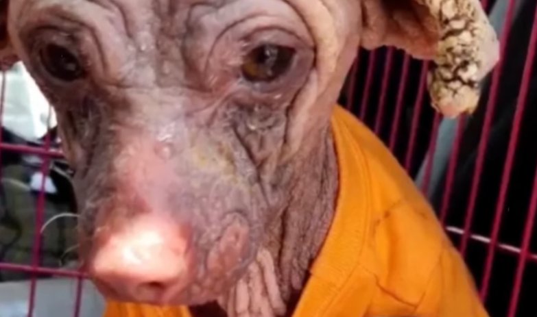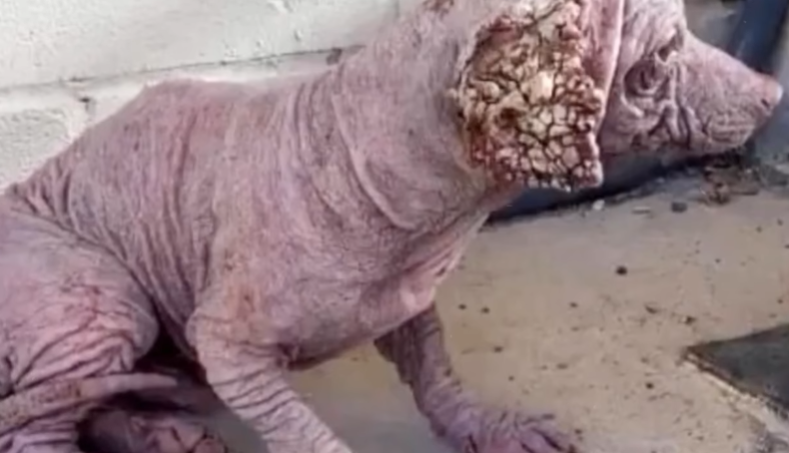 For as long as anyone in the village could remember, the strange-looking dog wandered the dusty roads like a ghost. His fur grew in uneven clumps, patches missing from years of untreated skin infections. His tail, thin and crooked, dragged low behind him. His ribs stuck out sharply beneath the little flesh he had, and one of his ears folded down permanently, as if weighed by the burden of the life he lived.