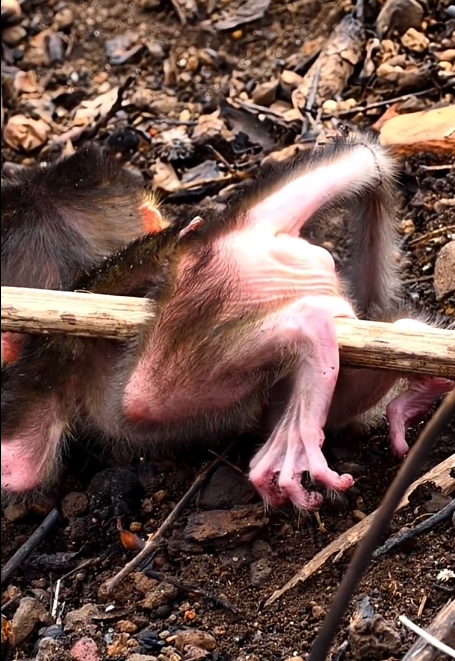 The video captures these movements in slow motion, emphasizing the struggle. Every effort is painstakingly slow, yet the sheer willpower is palpable. The baby monkey’s tiny mouth opens as if crying out—not in fear, but as a primal expression of effort. It is a reminder that even the smallest lives can hold incredible strength and resilience.