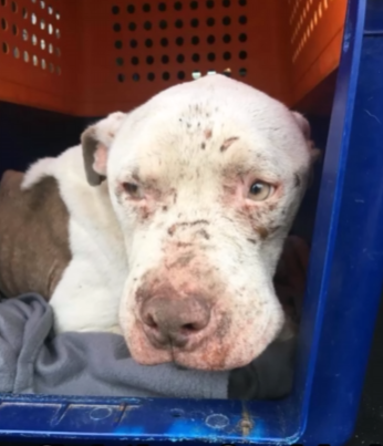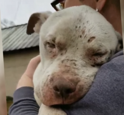 Under a flickering streetlight, on a forgotten stretch of road near the edge of town, a pit bull shivered in the shadows. His fur, once a shiny brown, was now dull with dirt and rain. His ribs showed beneath his skin. His eyes—deep, tired, heartbroken—kept drifting toward the road as if waiting for someone to return.