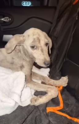 Myra scooped her up gently. Misu, confused, didn’t struggle. She was too weak. Too tired. But when Myra pressed her to her chest, offering warmth, the puppy leaned in instinctively—one last plea for comfort.