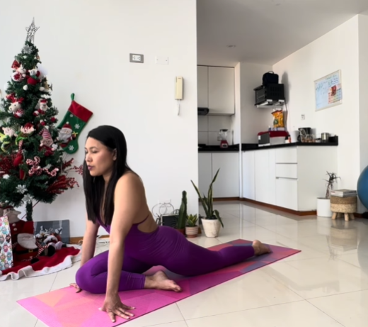 Pigeon Pose stretches the glutes, piriformis, and deep hip rotators, releasing tension that can affect lower-back alignment and overall movement efficiency.