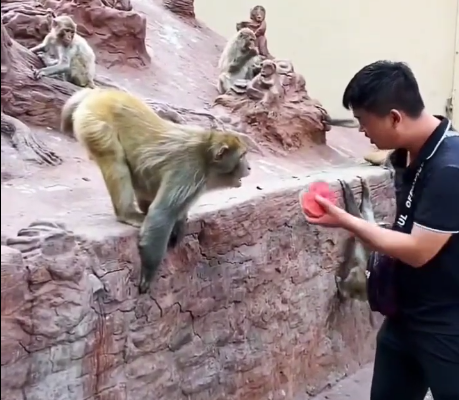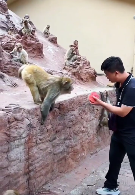 In the bustling tourist city of Hangzhou, China, a park renowned for its lush greenery and scenic lake had long been home to a lively troop of monkeys. Visitors came from far and wide, drawn by the beauty of the park—and, unknowingly, by the mischievous antics of the primates who had learned to turn every visitor encounter into a game. Among these antics, none was more infamous than the “mirror trick,” a clever ruse that had, over time, frustrated the monkeys more than amused them.