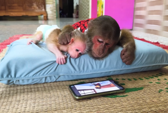 The day continued with Baby Monkey and CUTIS attending to her every need. They fetched water from the stream, brought soft leaves for comfort, and even gently groomed Mommy Monkey’s fur. Every action, no matter how small, was filled with love and intention. CUTIS guided Baby Monkey patiently, showing him how small gestures could convey the deepest emotions.