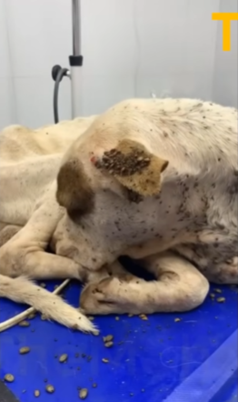 She touched his ears gently. Beneath her fingertips, she felt the tiny, crawling bodies of hundreds of ticks. They moved through his fur like a dark swarm, clinging tightly and feeding off his exhausted body.