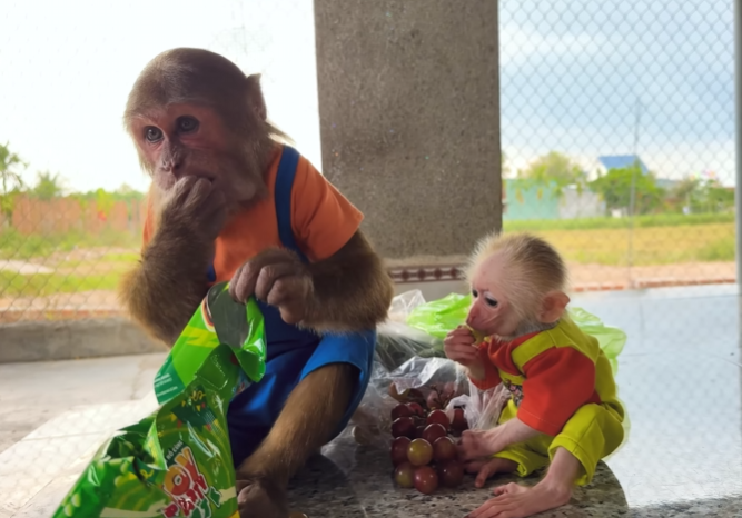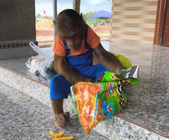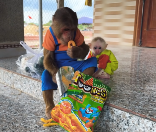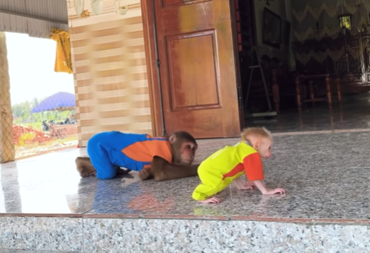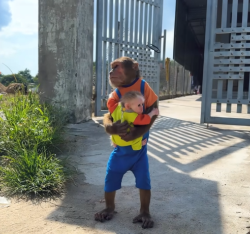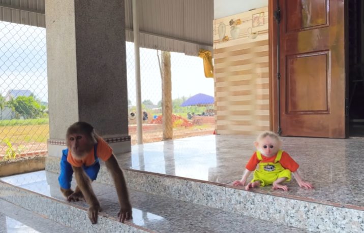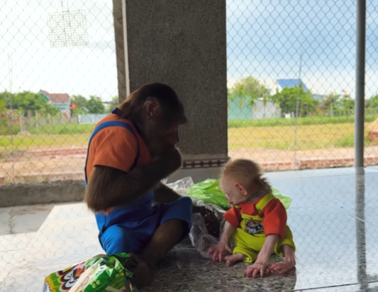They were locked onto something across the river—something shiny, colorful, and irresistible to a baby monkey’s heart.