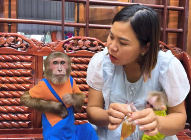 Mama Monkey laughed softly. “He’s just watching. He won’t go.”