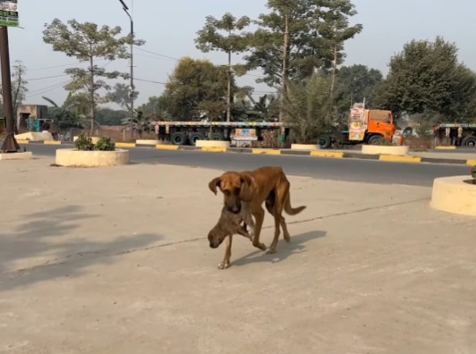 On the side of a dusty rural road, beneath an old tamarind tree whose branches offered only a thin slice of shade, a small, golden-brown dog curled into herself. Her ribs showed through her fur, and her eyes—usually bright with excitement—had grown dull, reflecting heartbreak rather than hope. She didn’t move much. She barely even blinked. She was waiting. Waiting for the only person she had ever trusted. Waiting for the human who drove away and never came back.