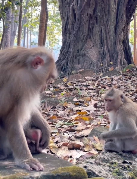 The forest was alive with its usual morning melody—birds calling out to the rising sun, leaves rustling as the breeze moved gently through the branches, and the soft chirps of young monkeys waking up for the day. But on this particular morning, something extraordinary happened… something so touching, so unexpectedly beautiful, that even the forest seemed to pause and watch.