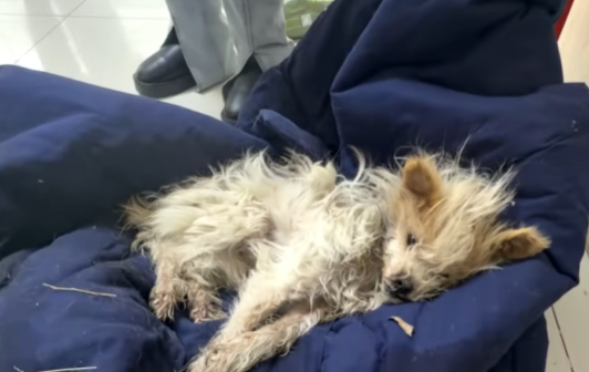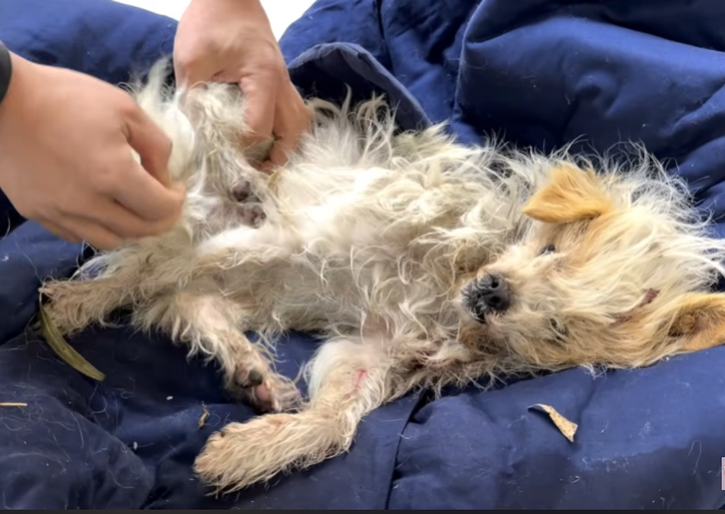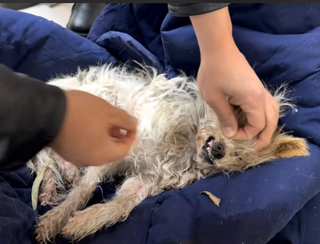 His body was limp, his breathing barely noticeable, and his eyes half-closed as though he’d already accepted the end. His ribs stuck out like thin, fragile branches, and his fur—patchy, dirty, and crawling with fleas—did little to protect him from the cold wind that swept through the abandoned alley.