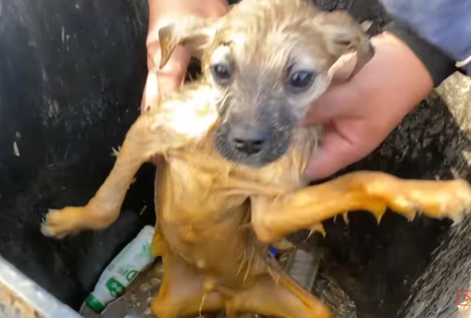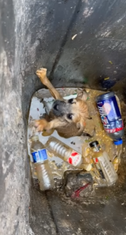 A dog—soaked, shaking, and covered in thick swill—was desperately clinging to the inside of the garbage can. His eyes were wide with fear, pleading for someone, anyone, to save him.