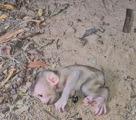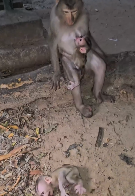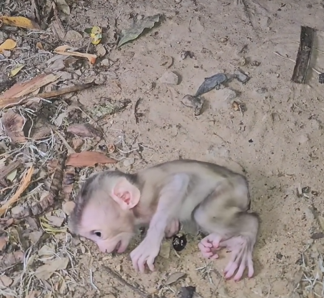 A tiny foundling macaque appeared at the edge of the troop’s territory. His fur was thin, his ribs visible beneath his fragile chest, and his eyes—wide, pleading, full of confusion—searched the trees for the mother he had lost.