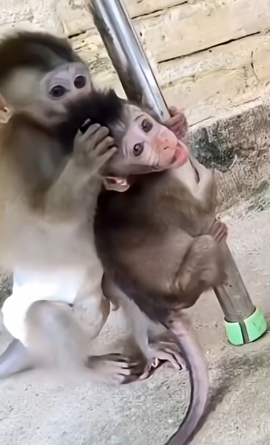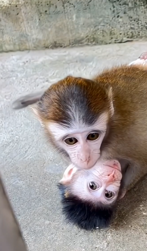 Yumi’s response was immediate, if silent. She clung tighter, her tiny arms wrapped around Cici’s neck in a pure, unfiltered display of affection. Her little fingers curled into Cici’s fur, and the faintest hint of a monkey smile appeared on her tear-streaked face.