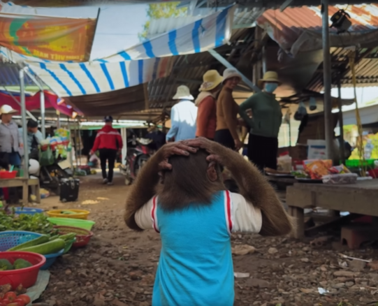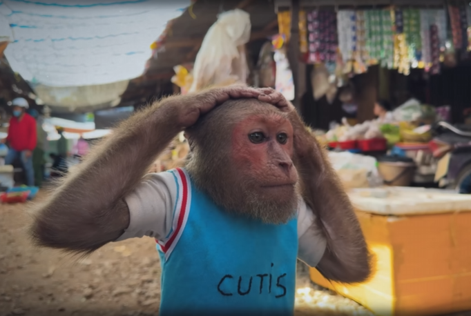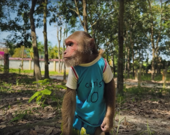 The baby monkey, Niko, peeked up at CUTIS with wide, trusting eyes. He squeaked softly, as if he understood the seriousness of the mission ahead.