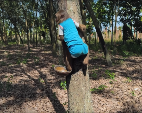 The forest was unusually quiet that morning. Sunlight filtered through the tall trees, but the usual playful chatter of monkeys was missing. Instead, a heavy stillness hung in the air, broken only by the rustle of leaves and the soft breathing of a baby monkey clutched tightly in CUTIS’s arms.