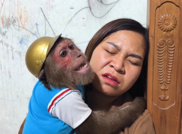 The baby monkey clapped excitedly, breaking the quiet moment with joy. The mom laughed quietly, a sound light and warm.