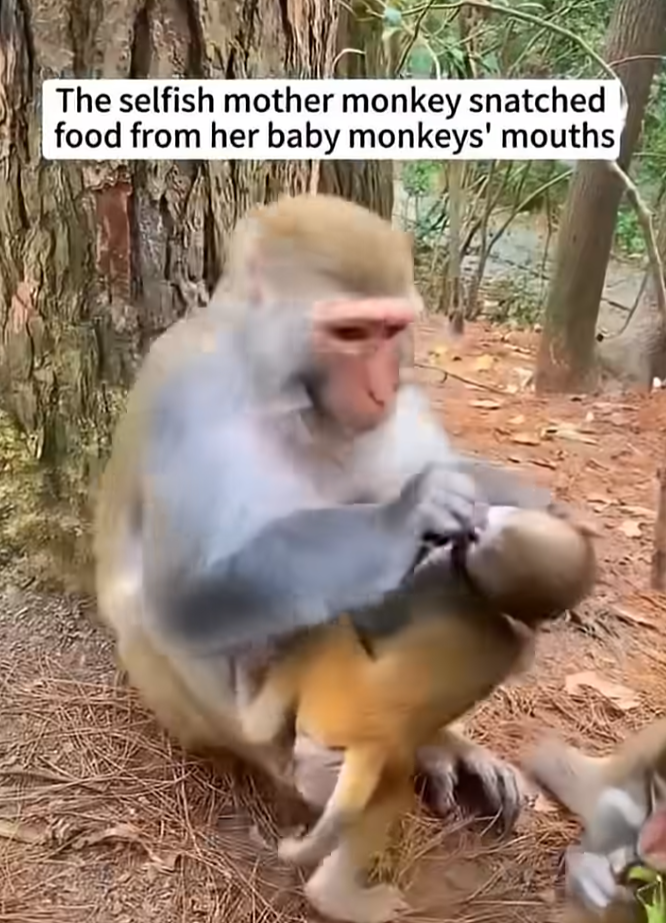 Following the sound, she reached a clearing where a troop of monkeys often gathered. From a distance, she saw something troubling. A tiny baby monkey clung to a low branch, its body stiff with fear. Nearby, its mother paced and snapped, swatting the air and pushing the baby away whenever it tried to crawl closer. The baby squeaked and stumbled, clearly confused and scared. Lina knew that animals, like people, could struggle sometimes. Mothers could be stressed, hungry, or overwhelmed. Still, the sight of the helpless baby being pushed aside made her heart ache.