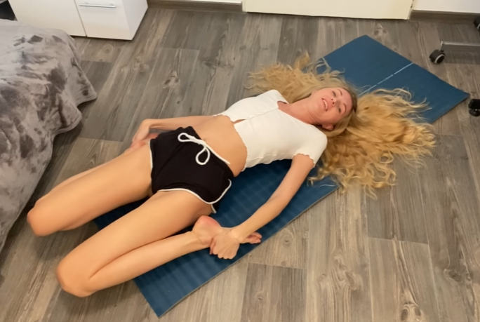 The final phase of the session is dedicated to deep stretching and relaxation. Long holds in hip flexor stretches, hamstring releases, and gentle spinal twists allow the body to fully unwind. These stretches help maintain pelvic alignment, ease lower back tension, and improve posture. A relaxed pelvis and spine encourage better movement patterns throughout the day, reinforcing the benefits of the workout long after it ends.