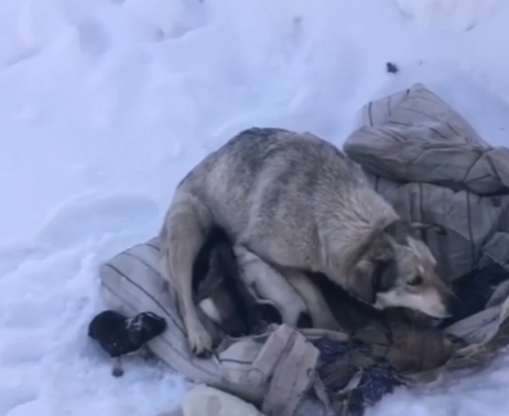 One by one, more pups came. Each arrival stole a little more strength from her already weakened body. Her breathing grew shallow, her muscles shook uncontrollably, but she never loosened her grip. She gathered her pups close, forming a living wall between them and the freezing air. Her body became their shelter, her heartbeat their heat.